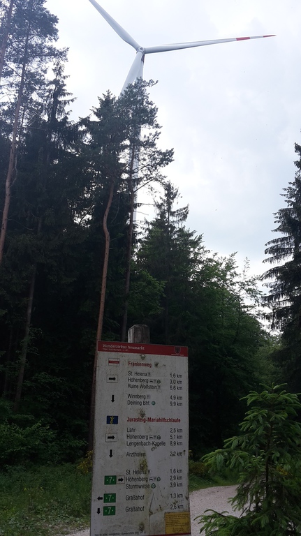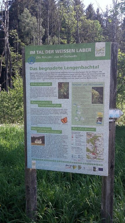 Wanderung von Deining aus nach Oberbuchfeld und zur Wahlfahrtskirche Lengenbach. Von dort aus Richtung Voggenthal, schöner Wanderweg durch den Wald, an der ersten "Abzweigung" rechts halten (Schild wg. Damm, Überflutung möglich). An dem Damm vorbei, weiter Richtung Quelle der "Weißen Laaber" und nach Voggenthal. Dort gleich links halten zur Straße nach Höhenberg. Hier entweder der Straße folgen oder - wer den Weg kennt - nach etwa 200m rechts den Berg rauf (Waldweg) Richtung Höhenberg / Helena. Kurzer Zwischenstop im Gasthaus Nutz in Helena, anschließend weiter am südlichen Ortsausgang Richtung Winberg. Nach etwa 15 min. (kurz vor dem Windrad) führt der geschotterte Weg runter Richtung Lähr und weiter nach Neumarkt. In Neumarkt gings dann etwa bis zur Baustelle in der Regensburger Straße. Nach dem Mittagessen und einer Pause gings dann den gleichen Weg wieder zurück nach Deining. Dauer: ca. 5 Stunden. Gut beschilderte Wege, angenehm zu gehen, da fast nicht auf der Straße und viel durch den Wald, Steigungen sind machbar. Hier noch ein paar Bilder...