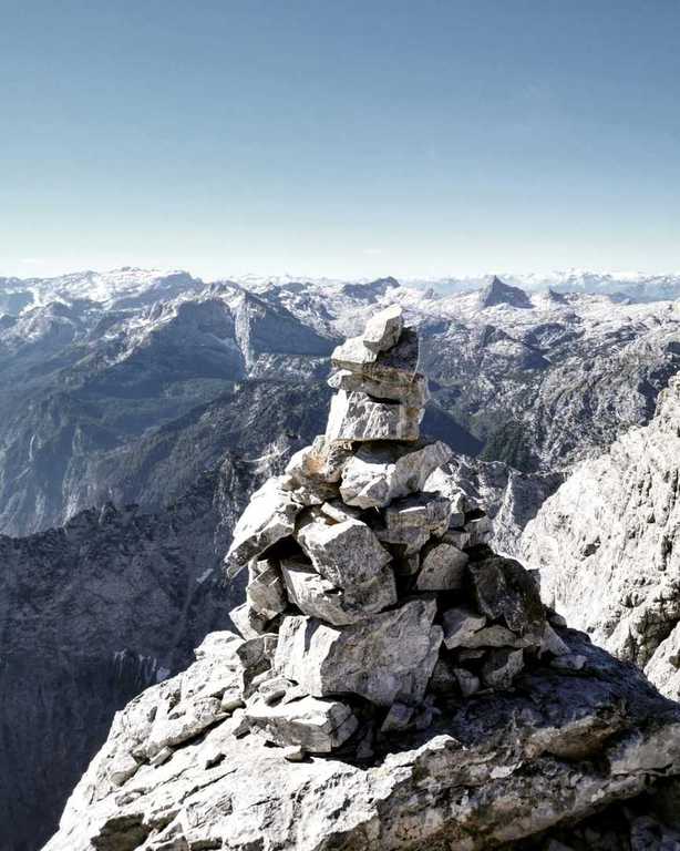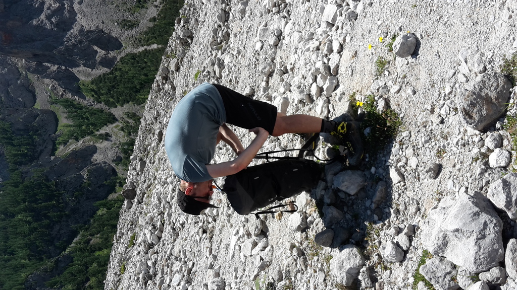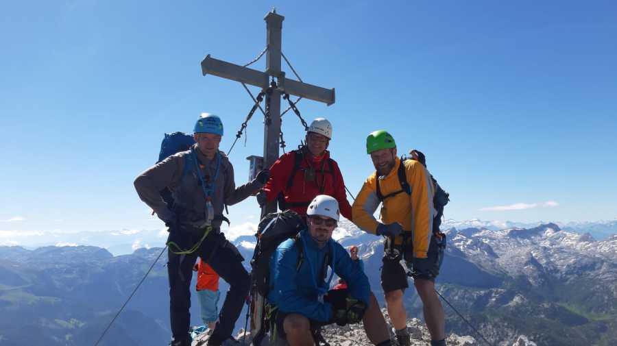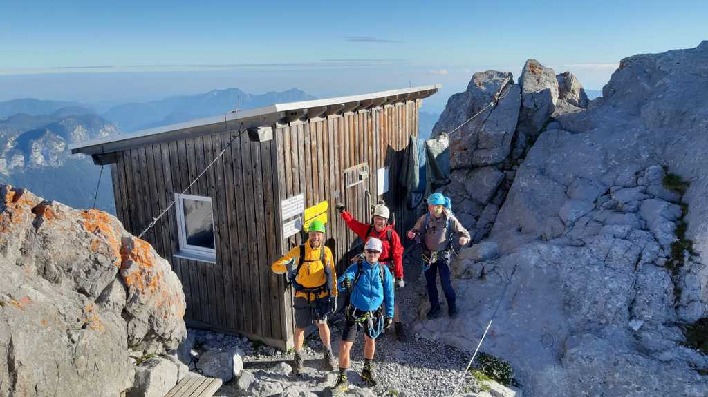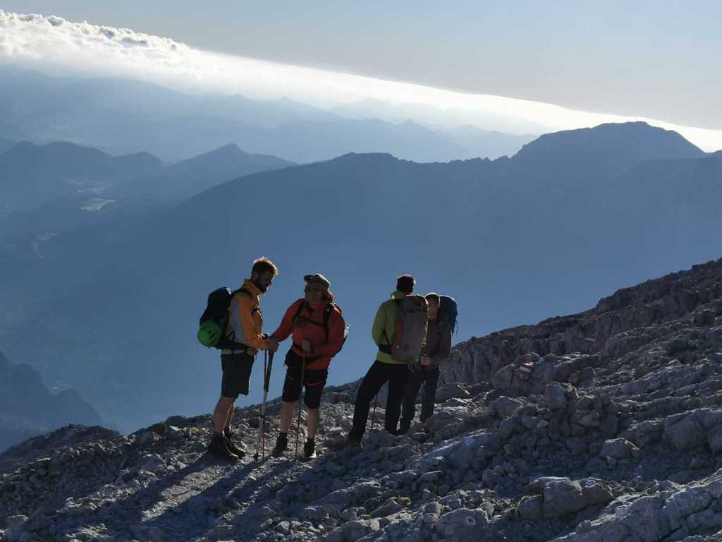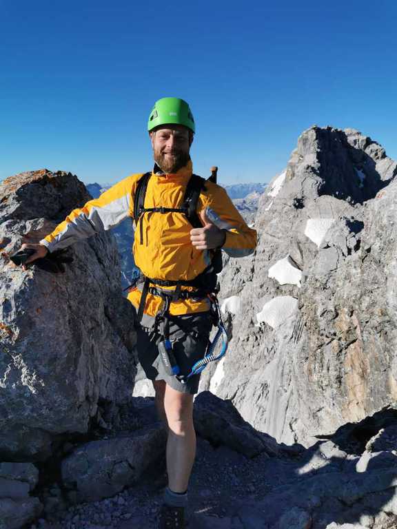 Der Weg zur Mittelspitze (2713m; ca. 8 Uhr) führt gleich am Notbiwak vorbei und hat bei uns eine Stunde gedauert. Schöne Wanderung bzw. Kletterei am Grat (relativ viel versichert, das ist aber immer Ansichtssache!!). Knapp zwei weitere Stunden später haben wir die Südspitze erklommen. (2712m; 10 Uhr). Dort Brotzeit gemacht, die Aussicht genossen, ausreichend Bilder geschossen und uns auf den langen Abstieg (mental) vorbereitet. (10.30 Uhr)